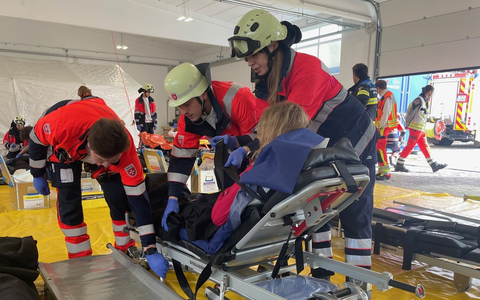 Am Samstag haben ehrenamtliche und hauptamtliche Einsatzkräfte die Versorgung und den Abtransport von vielen Verletzten (Massenanfall von Notfallpatienten) geübt.