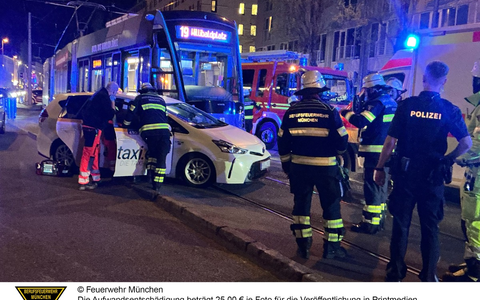 Zu einem Zusammenstoß zwischen einem Taxi und einer Straßenbahn ist es am Samstagabend in München gekommen. Glücklicherweise ging es glimpflich aus.
