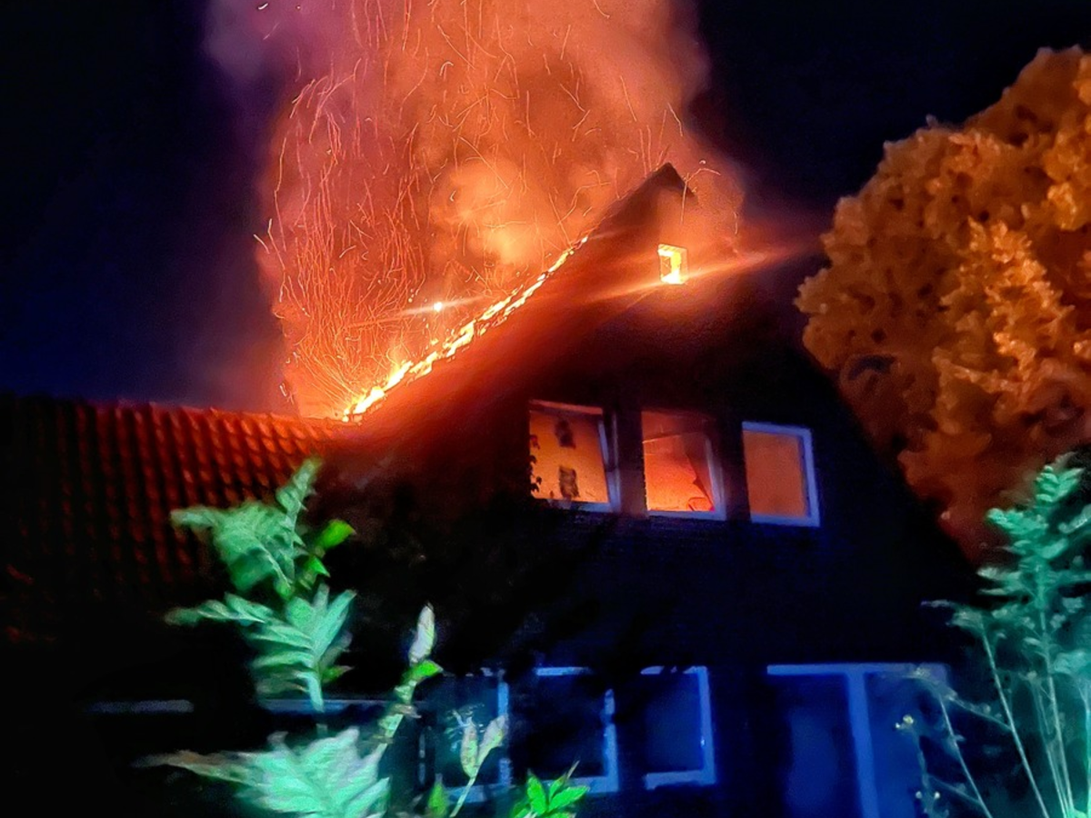 15.09.2024 - 12:14:06 | presseportal.deDer nach knapp fünf Minuten ersteintreffende hauptamtliche Löschzug bestätigte die Meldung und konnte nach erster Erkundung einen Vollbrand des Dachstuhls eines leerstehenden Einfamilienhauses bestätigen. Aufgrund dessen wurde eine weitere Drehleiter und ein zusätzlicher Löschzug nachgefordert.