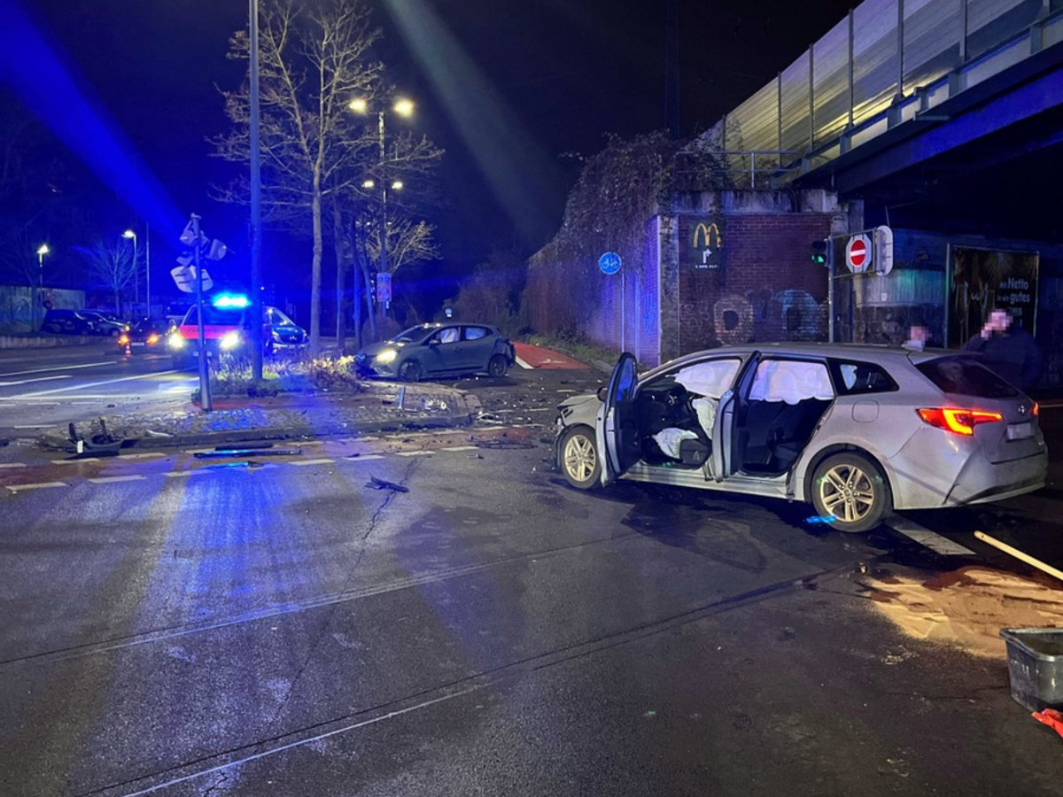 Im Kreuzungsbereich kam es zum Zusammenstoß mit dem von rechts kommenden, vorfahrtsberechtigten Toyota Corolla Kombi eines unbeteiligten 47 Jahre alten Mannes aus Neuss. Bei der Kollision wurde der Korschenbroicher selbst schwer und zwei 20 und 21 Jahre alte Mitfahrer des Neussers leicht verletzt.