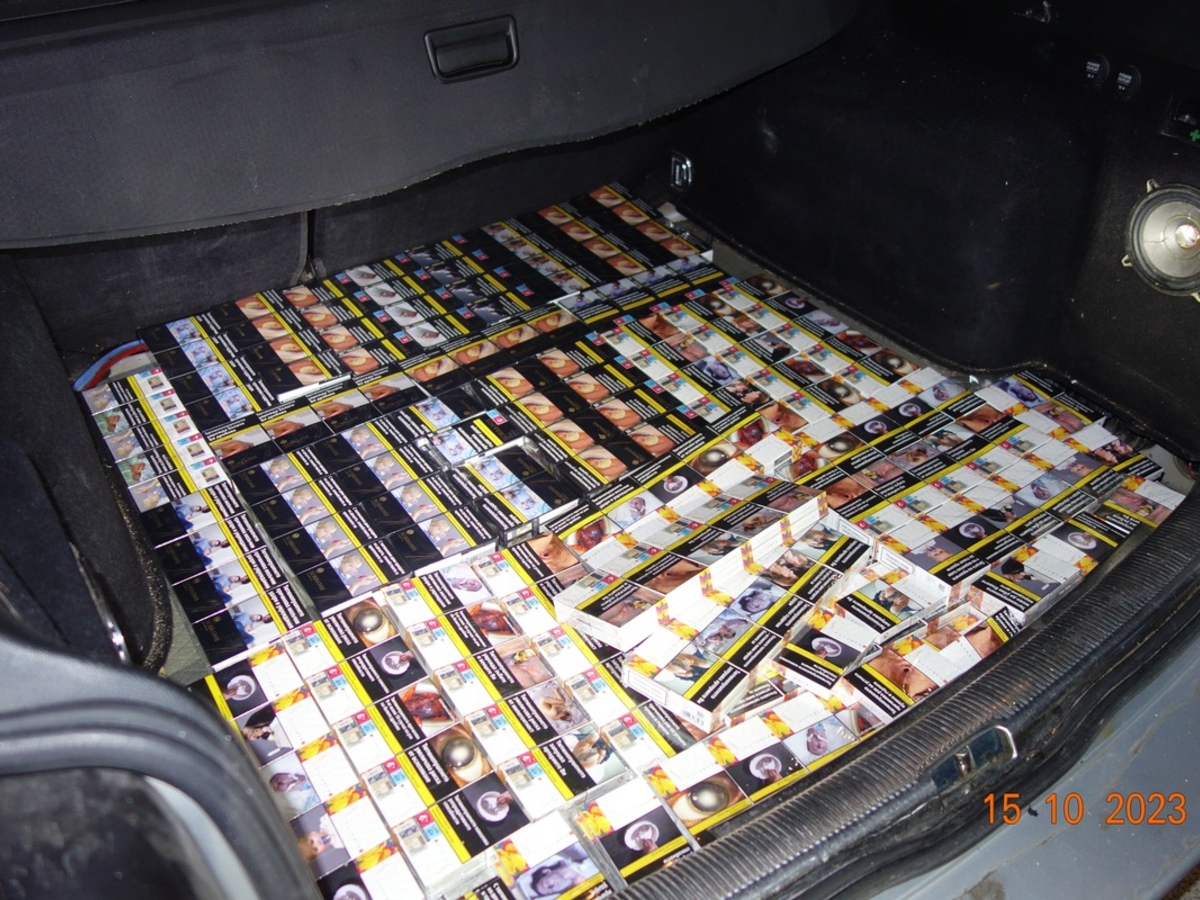 Aus allen möglichen Ecken - versteckt und offen - kamen dort Zigaretten zu Tage: im Handschuhfach, im Fußraum, in einem Koffer, unter der Kofferraumabdeckung und in der Seitenverkleidung. Nach dem Absuchen aller Hohlräume summierten sich die Funde auf über 31.000 Zigaretten verschiedener Marken.