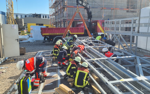Offenburg - Am Mittwoch gegen 16.30 Uhr war es auf einer Baustelle in der Burdastraße zu einem Arbeitsunfall gekommen, bei dem ein Arbeiter schwer verletzt wurde. Ein Baukran sollte ein mehrere Meter langes und schätzungsweise 600 kg schweres Metallgestell auf der Baustelle des Erweiterungsbaus der Montessori-Schule bewegen, als dieses unvermittelt umkippte und einen Handwerker erfasste. Der Mann wurde im Hüft- und Beinbereich einklemmt und schwer verletzt. Die Kollegen des Arbeiters reagierten sehr besonnen und begannen bereits während der Alarmierungsphase, mit einem Radlader die Befreiung einzuleiten und das umgefallene Strebengitter mit Holzbohlen zu unterbauen. Die Feuerwehr Offenburg konnte das Metallgestell mit Hilfe ihres Fahrzeugskranes anheben und den schwer verletzten, etwa 50 Jahre alten Handwerker aus seiner lebensbedrohlichen Lage retten. Er wurde von einem Notarzt-Team versorgt und in das Klinikum gebracht. Die 22 Einsatzkräfte des Rüstzuges waren mit sechs Fahrzeugen eine gute Stunde tätig. Zum Unfallhergang hat die Polizei die Ermittlungen eingeleitet.