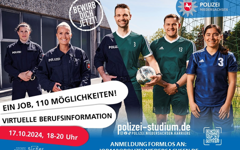 Virtuelle Berufsinformation der Polizei Niedersachsen am 17. Oktober 2024 von 18:00 bis 20:00 Uhr