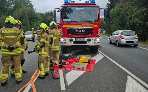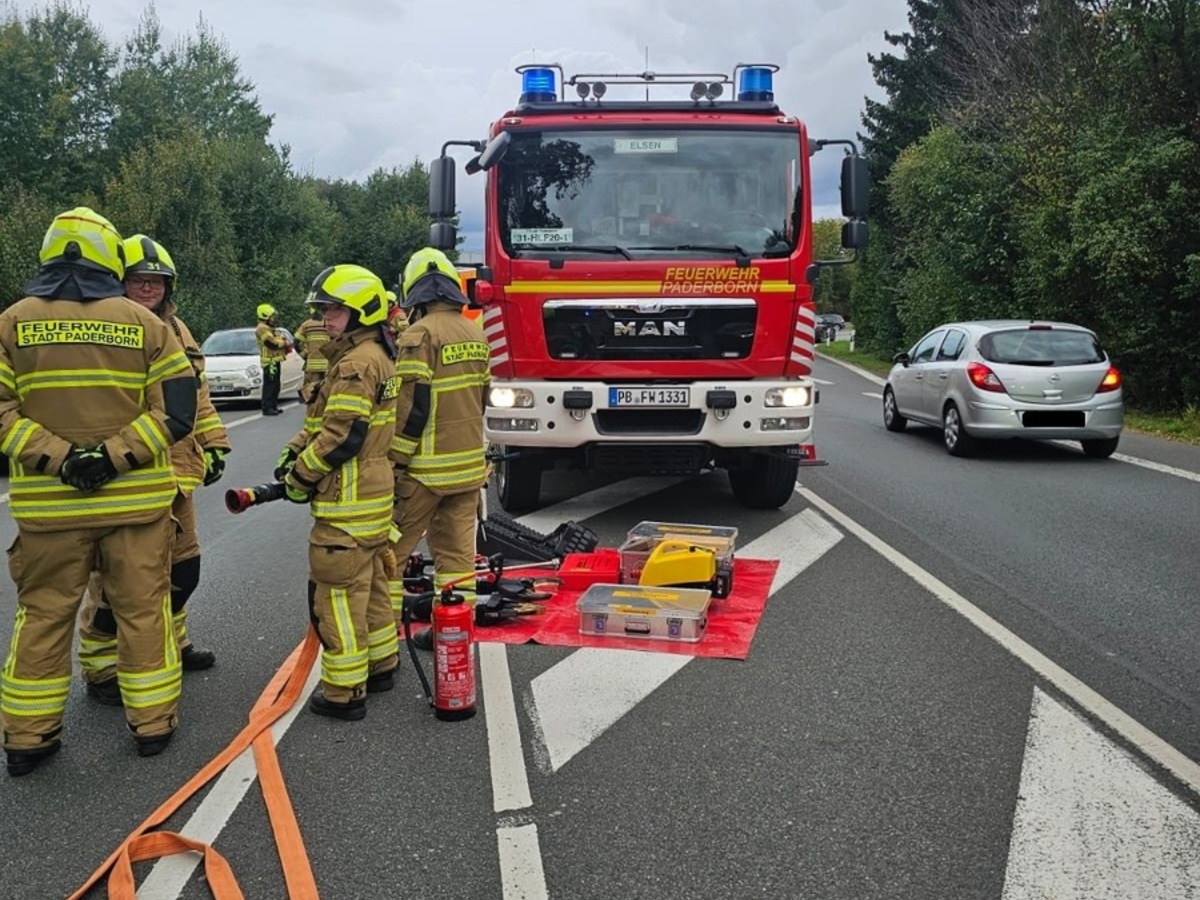 Daraufhin alarmierte die Leitstelle des Kreises Paderborn die Feuerwehr Paderborn unter dem Stich- wort "Verkehrsunfall - eine eingeklemmte Person", sowie zwei weitere Rettungswagen und ein Notarzteinsatzfahrzeug.