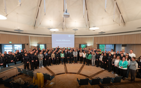 Im Anschluss erhielten die Neuzugänge einen Einblick in die verschiedenen Dezernate des Behördenstabs. Zudem stellten sich verschiedene Interessenvertretungen vor. Nach einem unterhaltsamen Erfahrungsbericht von zwei jungen Mitarbeitenden, wie sie als Tarifbeschäftigte und als Vollzugsbeamter den Start in der Polizei erlebt haben, folgte ein offener Austausch an verschiedenen Informationsständen. Die Abschlussworte richtete dann der Vizepräsident der Polizeidirektion Göttingen, Mathias Schröder, an die Anwesenden: "Mit der Polizeidirektion Göttingen haben Sie eine Behörde, in der man Ihnen Raum gibt, Ihre Ziele zu verwirklichen. Wir wünschen Ihnen dabei viel Erfolg und Spaß bei der Arbeit."