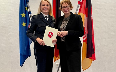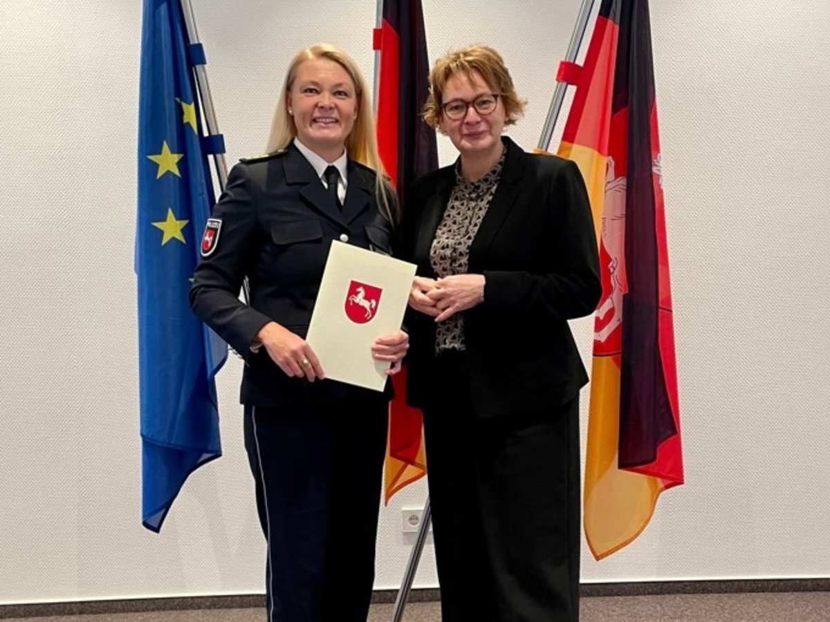 PolizeiprĂ€sidentin in der Polizeidirektion Göttingen: Niedersachsens Innenministerin Daniela Behrens fĂŒhrt Tanja Wulff-Bruhn offiziell ins Amt ein