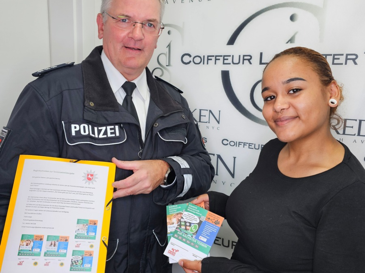 Rotenburg. Gemeinsam mit den Kooperationspartnern des PrĂ€ventionsrates der Stadt Rotenburg und dem Lions Club Rotenburg (WĂŒmme) geht die Rotenburger Polizei bei der PrĂ€vention von TelefonbetrĂŒgereien jetzt neue Wege. Die Beamten lieĂen sich dabei von einer Idee ihrer LĂŒneburger Kollegen inspirieren. Vor allem Ă€ltere Menschen werden immer wieder Opfer von Betrugsmaschen. Angebliche Enkel, die kurzfristig groĂe Bargeldsummen benötigen, falsche Polizeibeamte, die sich plötzlich melden und nach den persönlichen VerhĂ€ltnissen der Senioren fragen und Menschen, die die Angerufen mit Schockabrufen verunsichern, versuchen mit immer neuen Maschen an das Geld der Betroffenen zu kommen. Um nicht Opfer eines solchen Betruges zu werden, rĂ€t die Polizei dringend, bei solchen Anrufen sofort aufzulegen. Als kleine GedankenstĂŒtze verteilten die Beamten jetzt Terminzettel an Friseure, Ărzte, Physiotherapeuten und auch an örtliche AutohĂ€usern. Darauf stehen wichtige Verhaltenshinweise. Die bunten Zettel mit den Tipps sollen den Senioren besonders ins Auge fallen, wenn sie beispielsweise am KĂŒhlschrank oder an einer Pinnwand hĂ€ngen.
