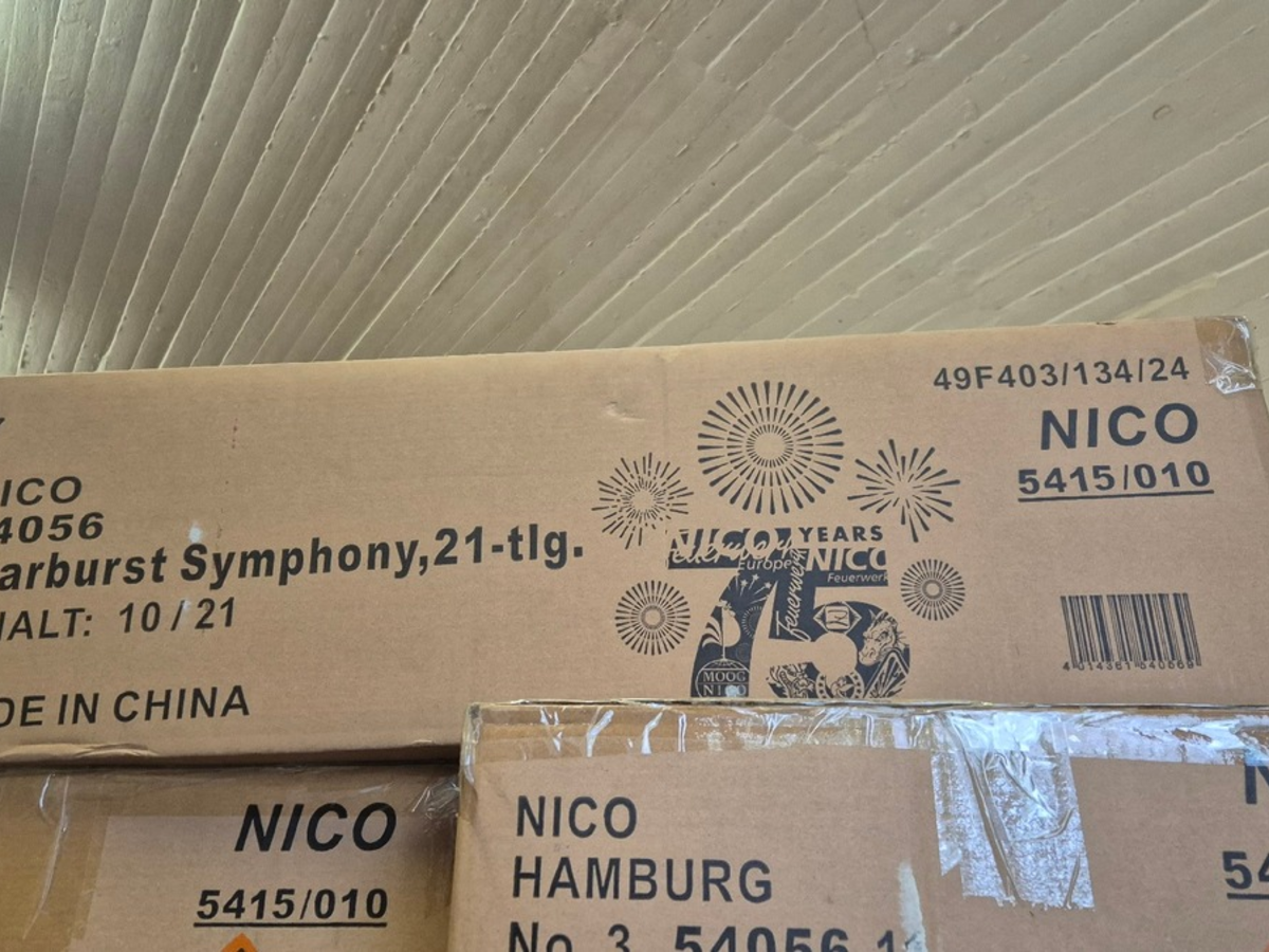 Am 22. November 2024 brachen bislang unbekannte Personen im Hünensteinweg in eine Lagerhalle ein und erbeuteten diverse Feuerwerkskörper der Marke Nico. Die Unbekannten entwendeten hierbei mehrere Kartons mit der 75-jährigen Jubiläumsaufschrift (s. Fotos). Da erst ab dem morgigen 28. Dezember 2024 der offizielle Feuerwerksverkauf startet, fragt die Polizei: