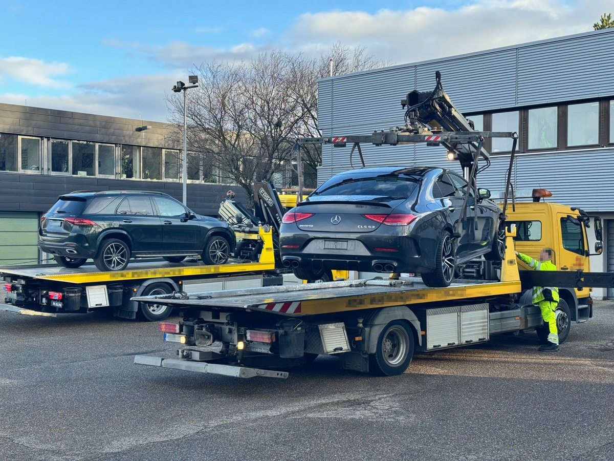 Am frühen Freitagmorgen wurden in Heilbronn zwei weitere, hochmotorisierte Kraftfahrzeuge aufgrund wiederholter Verstöße gegen die straßenverkehrsrechtlichen Vorschriften auf Anordnung des Polizeipräsidiums Heilbronn beschlagnahmt. Die Beschlagnahmeverfügung gilt zunächst für die kommenden 4 Wochen. Bereits im Oktober des vergangenen Jahres wurde ein Mercedes Benz CLS 500 4MATIC wegen wiederholter Verstöße durch das Polizeipräsidium Heilbronn beschlagnahmt. Der Wagen wurde zwischenzeitlich durch die Stadt Heilbronn eingezogen. Am heutigen Freitag wurde ein weiteres Fahrzeug des bereits im Oktober betroffenen Fahrzeughalters, ein Mercedes-Benz AMG CLS 53 4MATIC in grau, beschlagnahmt. Zudem wurde ein Mercedes-Benz GLE 400 D 4MATIC in grün, eines Familienangehörigen des Mannes beschlagnahmt. Trotz der, aufgrund massiver Verkehrsverstöße, im Oktober durchgeführten Beschlagnahme eines Mercedes Benz CLS 500 4MATIC, kam es bereits im Dezember 2025 zu einem weiteren gefährlichen Vorgang im Straßenverkehr mit einem der heute beschlagnahmten Fahrzeuge, desselben Fahrzeughalters. Hierbei wurde zunächst mit deutlich erkennbarer überhöhter Geschwindigkeit durch ein Heilbronner Industriegebiet gerast und der Fahrer eines unbeteiligten Fahrzeuges wurde durch wiederholtes dichtes Auffahren genötigt. Hierbei kam es noch zu einer Vielzahl weiterer Verstöße bis hin zur Bedrohung von Verkehrsteilnehmern und dem unzulässigen Überholen auf einer Rechtsabbiegerspur. In den Sozialen Medien wurden die Fahrzeuge des Fahrzeughalters und deren Fahrweise zudem angepriesen und polizeiliche Maßnahmen, wie beispielsweise die Beschlagnahme vom Oktober 2025, ins Lächerliche gezogen.