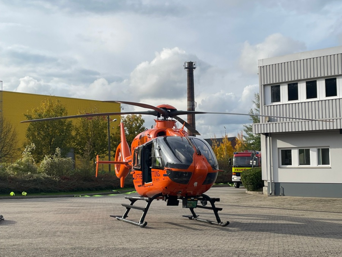 Ratingen - Am 22.10.2025 wurde die Feuerwehr Ratingen um 14:41 Uhr zu einem Unfall zum Breitscheider Weg alarmiert. In einem dortigen Gewerbepark war in einer Lagerhalle ein Arbeiter aus mehreren Metern Höhe gestĂŒrzt und hatte sich erhebliche Kopfverletzungen zugezogen. Der bereits zuvor eingetroffene Rettungsdienst wurde unterstĂŒtzt. Nach weiterer Stabilisierung durch die NotĂ€rztin wurde der Rettungshubschrauber Christoph 9 aus Duisburg angefordert. Somit konnte der Patient durch die Besatzung des RTH zur weiteren Behandlung in eine geeignete Fachklinik geflogen werden. Die Polizei hat die Ermittlungen zum Unfallhergang aufgenommen. Im Einsatz war die Berufsfeuerwehr, der Rettungsdienst der StĂ€dte Ratingen und Heiligenhaus mit NotĂ€rztin, KrĂ€fte der Freiwilligen Feuerwehr Lintorf sowie die Polizei/Kripo.