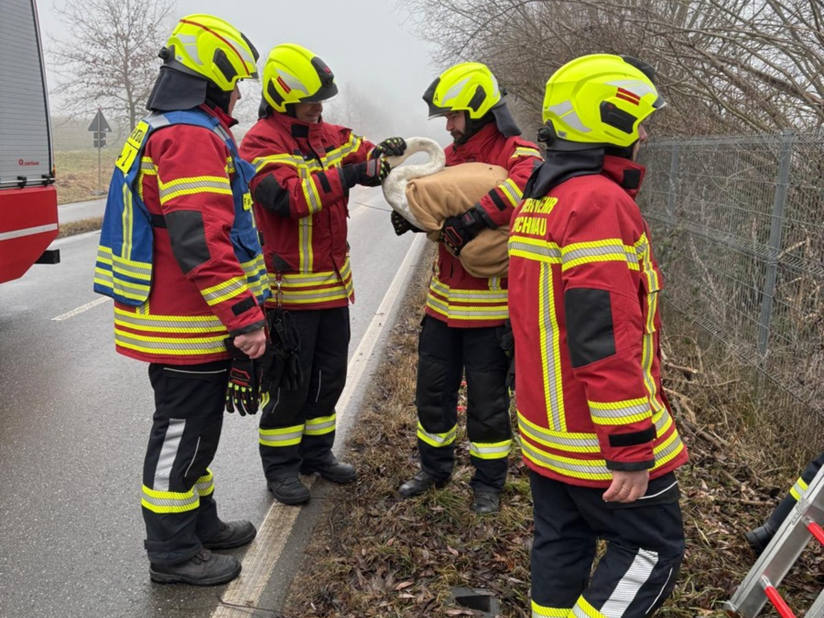 FW Reichenau: Schwan vom Bahndamm gerettet, Reichenau-Lindenbühl, 20.01.2026 - Foto: presseportal.de