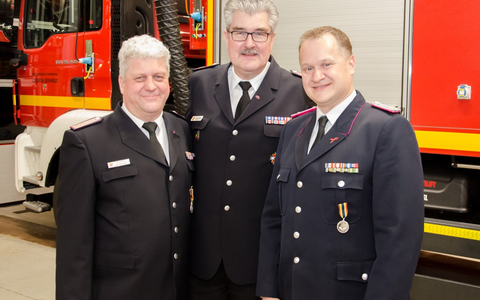 Fluthelfermedaile des Landes Rheinland-Pfalz wurden durch die Kreiswehrführung an Sönke Eggers, Lars Wichmann, Jörg Damm, Ties Petersen, Lukas Rathjen und Jan-Philipp Hingst verliehen.