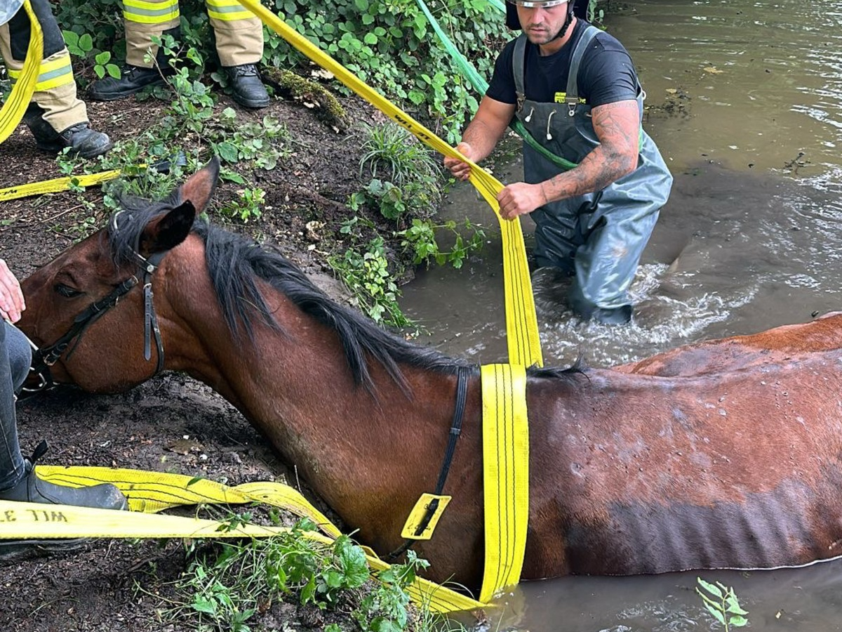 FW Rheurdt: Pferderettung mit Happy End: Feuerwehr befreit Showtime aus Wasser