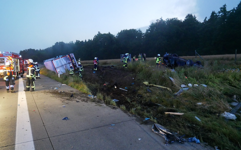 Reeßum/A1. Ausgesprochen viel Glück hatten die Beteiligten eines Verkehrsunfalls, der sich am Dienstagabend auf der Hansalinie A1 zwischen den Anschlussstellen Bockel und Stuckenborstel in Fahrtrichtung Bremen ereignet hat. Ein 55 Jahre alter Fahrer eines Sattelzuges war gegen 21.45 Uhr vom rechten der drei Fahrstreifen auf den Seitenstreifen gekommen. Dort kollidierte der Lkw mit einem unbesetzten Opel Insignia, der dort nach einer Panne abgestellt war. Durch die Wucht des Aufpralls wurde der Pkw etwa dreißig Meter auf ein Feld geschleudert. Der Sattelzug geriet auf den Grünstreifen und kippte dort um. Menschen wurden bei der Kollision nicht verletzt. Den Sachschaden beziffert die Polizei auf annähernd 200.000 Euro.