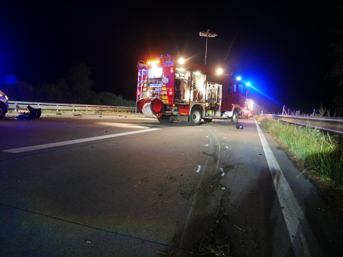 Nach derzeitigem Kenntnisstand kam der 27-jährige Fahrer eines BMW 1er aus bislang ungeklärter Ursache nach rechts von der Fahrbahn ab und kollidierte mit der Außenschutzplanke. Durch die Wucht des Aufpralls wurde der Wagen wieder auf die Fahrbahn zurückgeschleudert und kam auf der linken Spur zum Stehen.