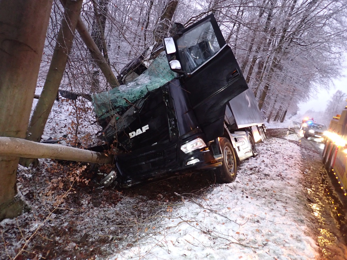 Ahausen. Am 04.01.2025, gegen 06:05 Uhr, geriet ein Sattelzug auf der B215 (zwischen Walle und Eversen) ins Schleudern und verunfallte aufgrund der schlechten Sicht- und Wetterverhältnisse. Der 45 Jahre alte Mann am Steuer verlor die Kontrolle über seinen Sattelzug und prallte in Richtung Eversen in einen angrenzenden Straßengraben. Der Fahrer erlitt bei dem Verkehrsunfall leichte Verletzungen und konnte sich eigenständig aus dem Unfallfahrzeug befreien. Er wurde einem Krankenhaus zugeführt.