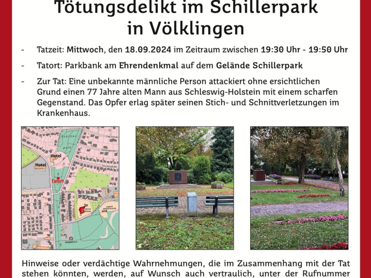 Belohnung im Fall des in Völklingen getöteten Mannes ausgelobt/ Sonderkommission Schillerpark sucht Zeugen