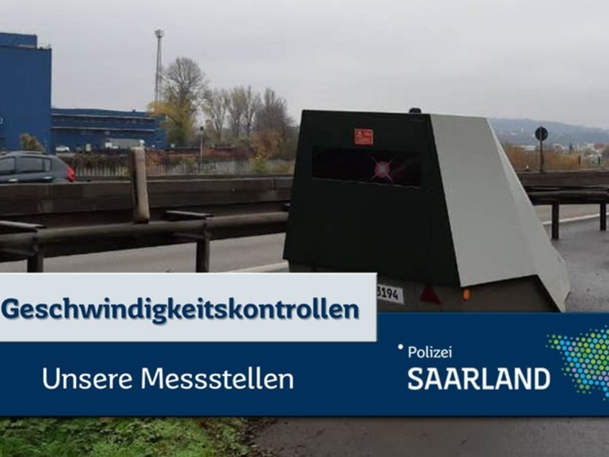 Geschwindigkeitskontrollen im Saarland / Ankündigung der Kontrollörtlichkeiten und -zeiten - 44. KW 2024