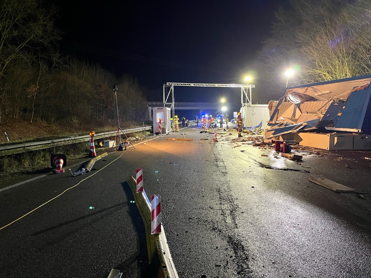 Scheibenhardt - Am 23.12.2024 ereignete sich um 23:43 Uhr ein größerer Verkehrsunfall mit einem LKW. Nach derzeitigem Stand fuhr ein Sattelzugfahrzeug mit beladenem Auflieger in die Grenzkontrollstelle der Bundespolizei. Hierdurch wurden die Einrichtung der Kontrollstelle u.a. wie Warnbaken, Lichtmast, Verkehrslenkungstafeln, Betonpoller und 3 Bürocontainer und zwei Dienstfahrzeuge beschädigt. Ebenso wurde der LKW schwer beschädigt. Der Sachschaden dürfte bei ca. 400000 Euro liegen. In einem Container befanden sich zum Aufprallzeitpunkt 2 Beamten der Bundespolizei, welche zum Glück leicht verletzt wurden. Der LKW Fahrer war alkoholisiert, ein freiwilliger Alkovortest ergab einen Wert von mehr als 1,8 Promille. Eine Blutentnahme wurde durch den Bereitschafsstaatsanwalt angeordnet, der Führerschein einbehalten. Die 2 Beamten der Bundespolizei wurden leicht verletzt, ebenso der LKW Fahrer. Eine medizinische Versorgung wurde vor Ort und im Krankenhaus gewährleistet. Die B9 aus Frankreich kommend war aufgrund der Aufräumungsarbeiten zeitweise für mehrere Stunden gesperrt. Nur der Verkehr in Richtung Frankreich läuft normal weiter. Am heutigen Morgen baut das THW die Kontrollstelle ab, sodass der Verkehr gänzlich wieder freigegeben werden kann.
