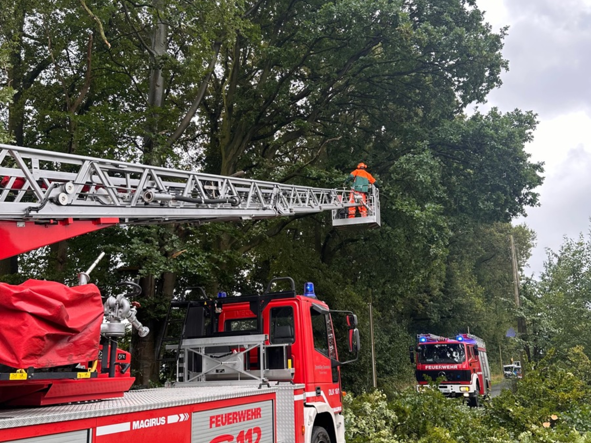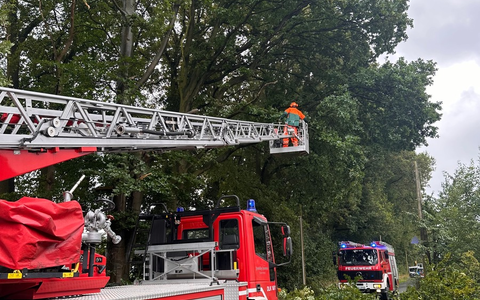 Weite Äste im Baum, die drohten abzubrechen, wurden mithilfe der Drehleiter beseitigt.