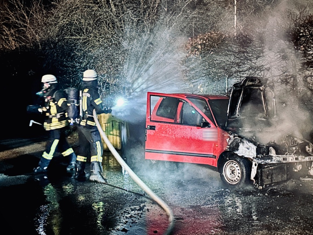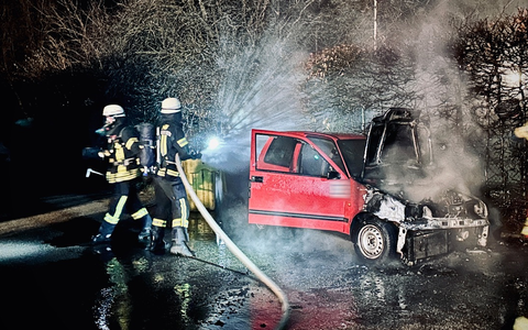 Vor Ort stellte sich heraus, dass ein Kleinfahrzeug in Vollbrand stand. Das Feuer hatte bereits auf eine angrenzende Hecke übergegriffen.