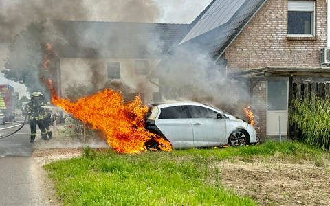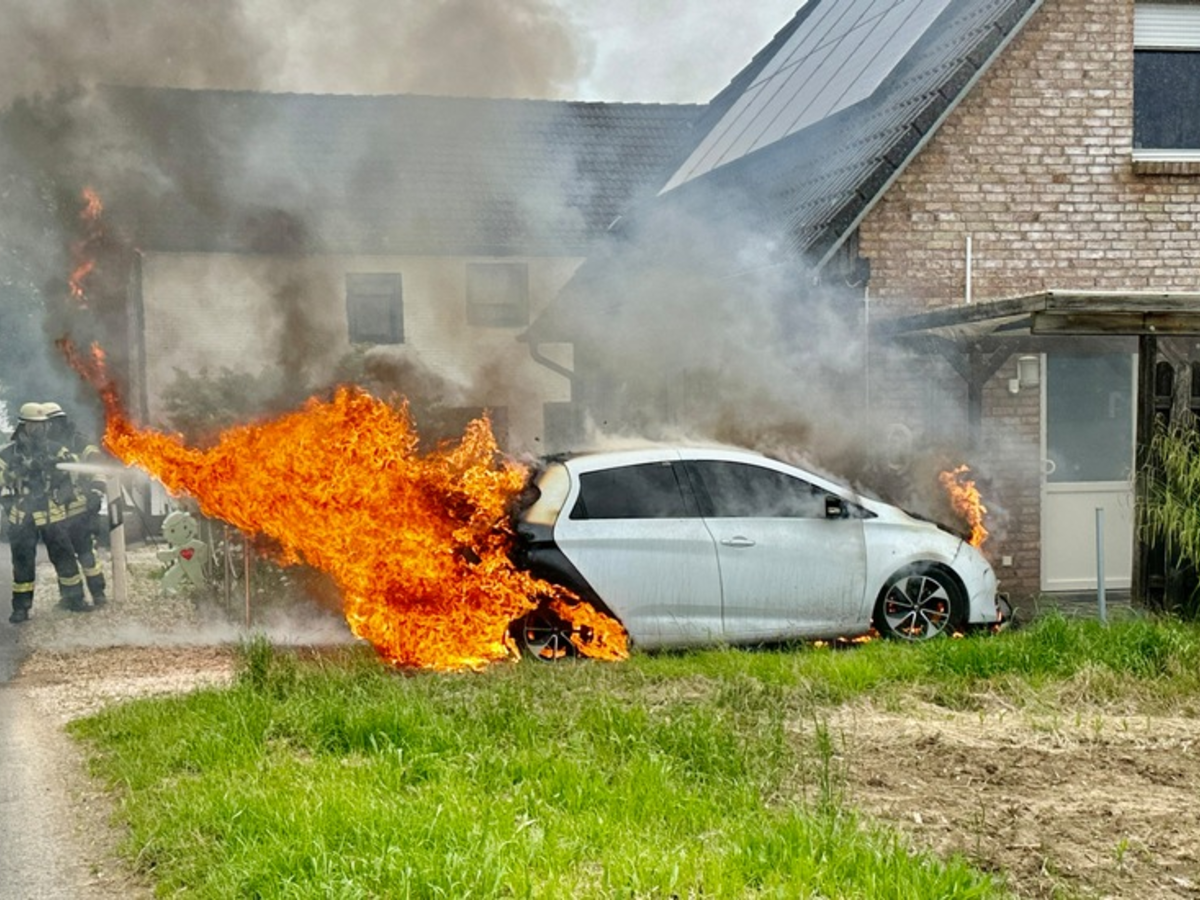 Vor Ort stellte sich heraus, dass ein Fahrzeug mit E-Antrieb in Vollbrand stand.