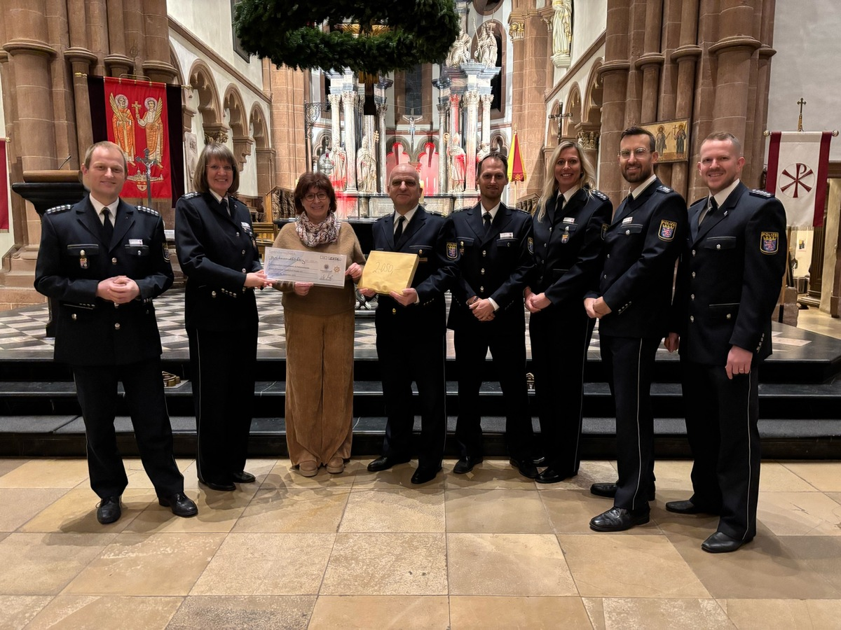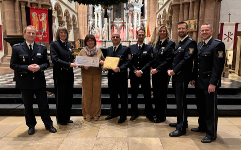 Wie in jedem Jahr wurde am Ende des Gottesdienstes eine Kollekte gesammelt. Die Spenden kommen in diesem Jahr dem "Albert-Schweitzer-Kinderdorf Hessen e. V." in Hanau und Wetzlar zugute - einer Einrichtung, die Kindern und Jugendlichen in schwierigen Lebenssituationen Schutz, Geborgenheit und neue Perspektiven bietet. Abteilungsdirektor Weller überreichte die Spende, 2.050 Euro, unmittelbar danach an Nicole Damm-Arnold vom Albert-Schweizer-Kinderdorf Hanau.