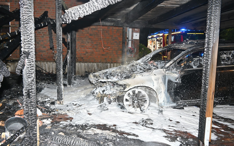 Der darinstehende Volvo sowie der Carport wurden bei dem Brand vollstÀndig zerstört.