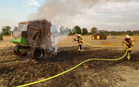 Rundballenpresse bei landwirtschaftlichen Arbeiten in Kutenholz in Brand geraten