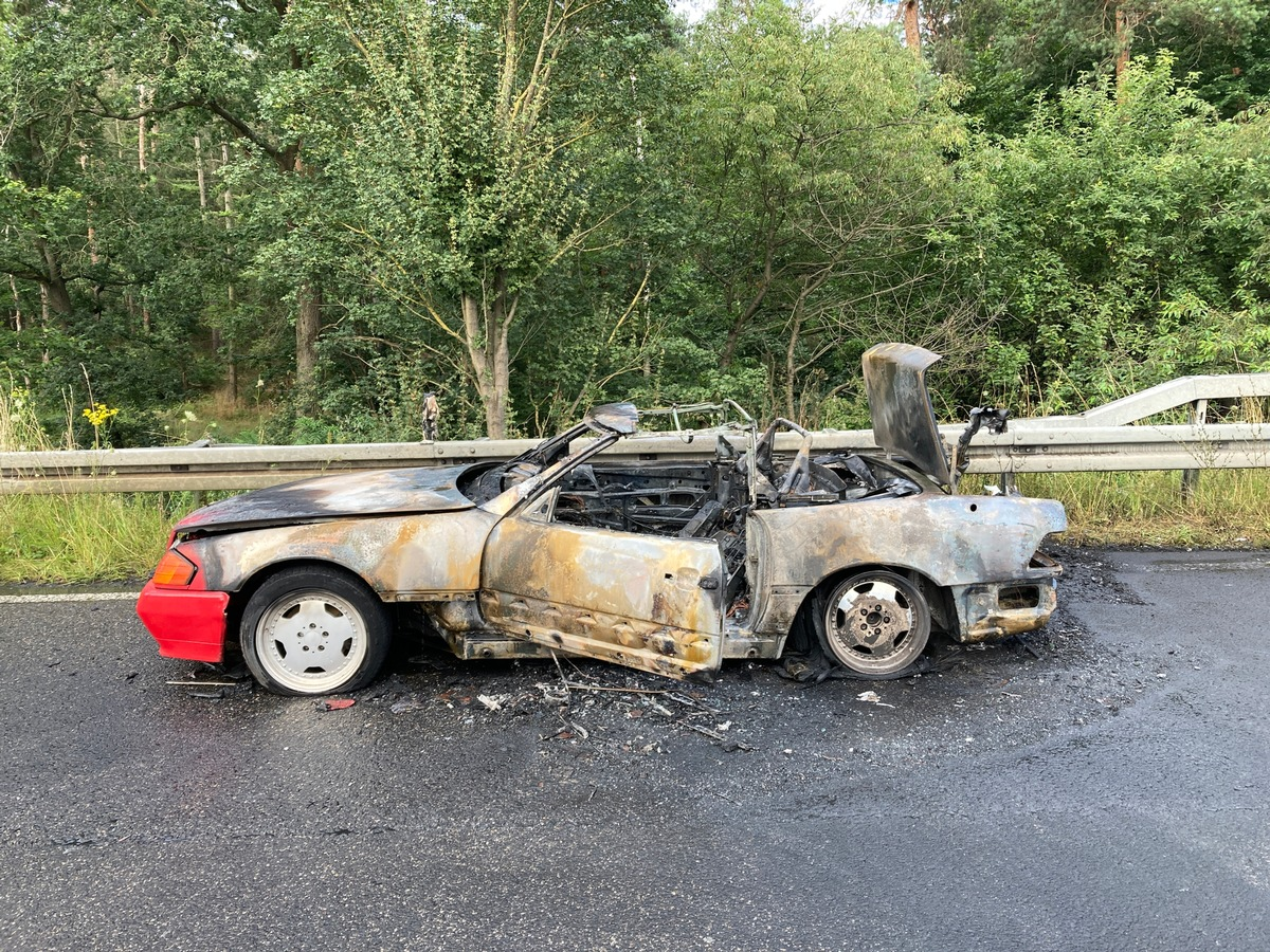 7. Mercedes brannte vollständig aus: Polizei geht von technischem Defekt aus - Bundesstraße 45/Rodgau