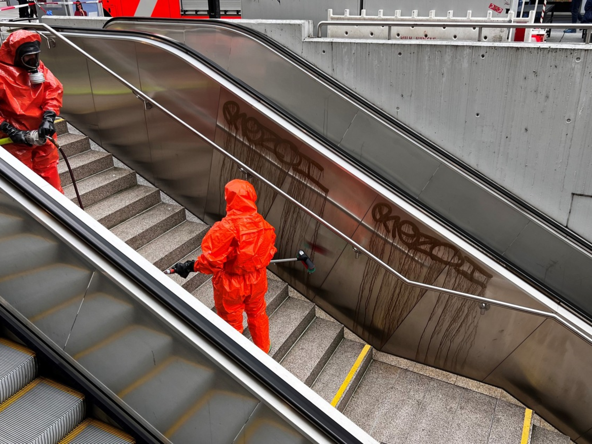 FW Stuttgart: Gemeinsame Pressemitteilung der Feuerwehr und Bundespolizeiinspektion Stuttgart: Einsatz durch SĂ€ure-Graffitis am Hauptbahnhof Stuttgart