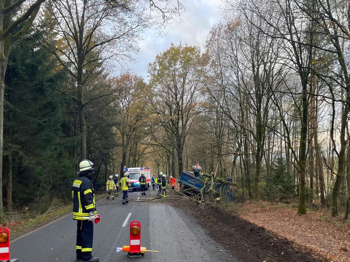 Südheide - Am Dienstagnachmittag kam es auf des L281 Höhe der Oldendorfer Kiesteiche zu einem folgenschweren Unfall. Der Fahrer eines LKW-Gespanns kam aus bislang ungeklärter Ursache nach rechts von der Fahrbahn ab, geriet auf den Seitenstreifen und kippe nach ca.50 m eine Böschung hinunter. Der mit Mineralgemisch beladenen LKW kippte um und blieb auf der Seite liegen. Der Fahrer des LKW konnte sich selber befreien und blieb glücklicherweise unverletzt. Um 14:06 Uhr wurde die Feuerwehr Oldendorf zu Beseitigung eines durch den Unfall gefällten Baumes und zur Aufnahme auslaufender Betriebsstoffe alarmiert. Der Baum wurde durch die Feuerwehr beseitigt und der LKW stromlos geschaltet. Da es sich um auslaufendes AdBlue handelte, waren keine weiteren Maßnahmen notwendig. Der Dieseltank blieb unbeschadet. Gegen 15:00 Uhr war der Einsatz für die Feuerwehr beendet. Die L281 musste aufgrund der Bergungsmaßnahmen zwischen Eschede und Oldendorf für mehrere Stunden voll gesperrt werden.