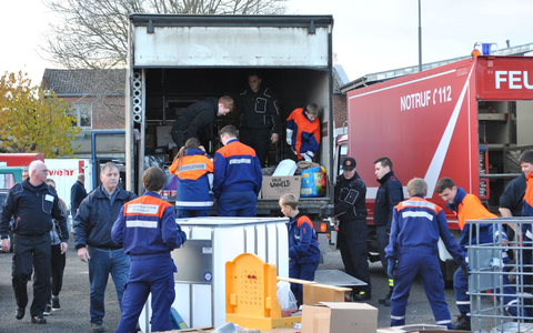 Gut 550 LKW`s haben rund 1.600.000 Kilometer Strecke gefahren. Ca. 2500 Fahrer waren für die Transporte unterwegs, davon 80 % aus den Reihen der Feuerwehr. Eine Telefonleitung von über 6 km haben wir neu verlegt. Mehrere Arbeitseinsätze von Handwerkern fanden statt. Hochgerechtet wurden ca. 420.000 Arbeitsstunden ehrenamtliche Leistungen vollbracht!