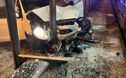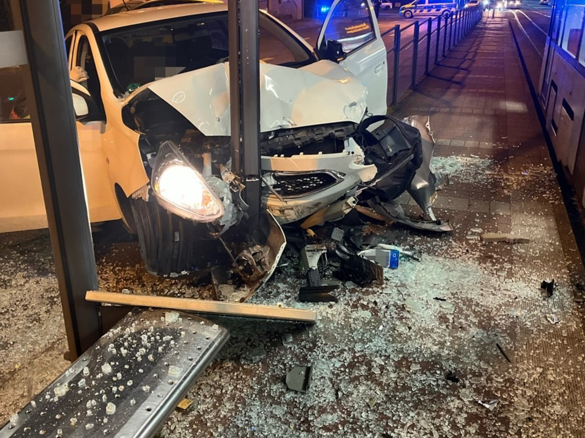 Verkehrsunfall in Innenstadt: Pkw touchiert Streifenwagen und fÀhrt in HaltestellenhÀuschen