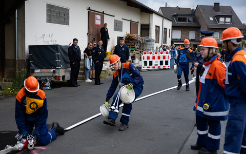 Letzte Amtshandlung von Christian Münzer war die Organisation und Durchführung des Leistungsnachweises der Wachtberger Jugendfeuerwehren. Nach kurzer Auslosung der Startreihenfolge ging es zum Wettkampfplatz und nach und nach absolvierten die Jungen und Mädchen aus Berkum, Niederbachem, Pech und Villip die Übung "1 C-Rohr, 1 Schaumrohr, Wasserentnahme offenes Gewässer". Hier musste man nicht nur schnell, sondern auch fehlerfrei arbeiten. Zum Leistungsnachweis gehören zusätzlich die Kenntnisse in Knoten und Stichen und ausführliches Wissen rund um das Thema Feuerwehr. Beste Gruppe war dieses Jahr die Jugendfeuerwehr Berkum und konnte damit ihren Titel aus dem Vorjahr verteidigen. Gefolgt von Niederbachem I, Villip und Pech. Die Gruppe Niederbachem II lief außer Konkurrenz.