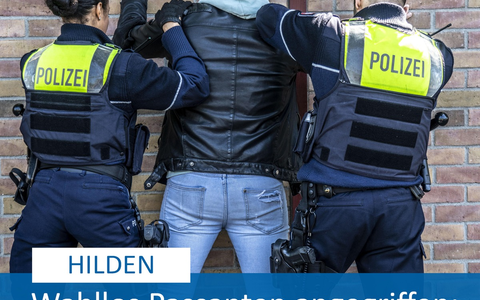 Nach dem derzeitigen Stand der Ermittlungen war der 36-Jährige gegen 9:40 Uhr mit seinem Fahrrad durch Hilden gefahren und hatte hierbei mehrere Passanten angegriffen. So gab er an der Bushaltestelle "Hagelkreuz" einem 84-Jährige grundlos eine Kopfnuss. Der Senior alarmierte anschließend die Polizei und musste mit einem Rettungswagen zur weiteren Kontrolle in ein Krankenhaus gebracht werden.