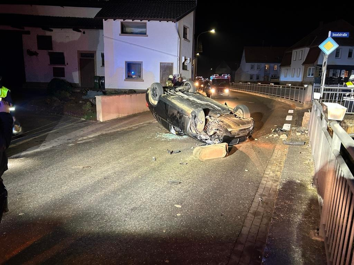 Waldgrehweiler (Donnersbergkreis) - Am 11.03.2025 gegen 03:00 Uhr ereignete sich in der Ortsmitte von Waldgrehweiler ein Verkehrsunfall, bei dem sich ein Fahrzeug überschlug. Ein 28-Jähriger PKW Fahrer aus dem Donnersbergkreis befuhr mit seinem SUV die Hauptstraße in Waldgrehweiler. Aus bislang noch nicht abschließend geklärten Umständen kam der PKW von der Fahrbahn ab, kollidierte mit einer Brückenmauer und überschlug sich. Das Fahrzeug kam auf dem Dach zum Liegen. Der Fahrzeugführer zog sich leichte Verletzungen zu. Er wurde vor Ort durch den Rettungsdienst medizinisch versorgt und kam vorsorglich in ein Krankenhaus. An dem Fahrzeug entstand ein Totalschaden. Dieses musste von einem Abschleppdienst geborgen werden. Die Brückenmauer sowie die Fahrbahn der Brücke wiesen ebenfalls erhebliche Schädigungen auf, so dass das Bauwerk vorsorglich gesperrt wurde. Der Gesamtschaden wird aktuell auf ca. 40.000 Euro geschätzt. Im Rahmen der Unfallaufnahme konnte zudem eine Alkoholbeeinflussung des Unfallfahrers festgestellt werden. Der Verunfallte muss sich nun auch wegen einer Straßenverkehrsgefährdung verantworten. Ihm wurde eine Blutprobe entnommen und der Führerschein wurde sichergestellt. Die Feuerwehren der Ortsgemeinden Waldgrehweiler, Finkenbach-Gersweiler und Schiersfeld sicherten die Unfallstelle ab und unterstützten die Rettungsmaßnahmen vor Ort. /DSI