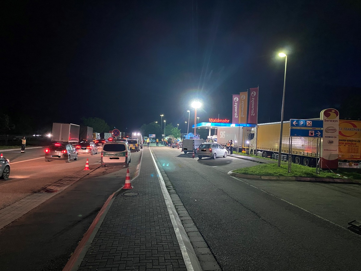 Waldmohr - Bereits am vergangenen Samstagabend führten Beamte der Polizeiautobahnstation Kaiserslautern, unterstützt von den Dienststellen der Polizeidirektion und der Kriminaldirektion Kaiserslautern gemeinsam mit Kräften der Kontrolleinheiten des Saarbrücker ZOLL, eine mehrstündige Verkehrskontrolle an der Tank - und Rastanlage Waldmohr durch. Das besondere Augenmerk der Einsatzkräfte lag hierbei auf Kraftfahrzeugführern, die unter Alkohol- oder Drogeneinfluss unterwegs waren, ebenso auf Personen, die sich illegal im Bundesgebiet aufhalten sowie der Feststellung von Straftätern, Tatverdächtigen und Tatfahrzeugen im Zusammenhang mit dem Deliktsfeld Wohnungseinbruch und Eigentumskriminalität. Parallel führte der ZOLL Kontrollen in den für ihn relevanten Deliktsbereichen durch: Überprüft wurden insbesondere der illegale Schmuggel von Zigaretten, alkoholischen Getränken, Betäubungsmitteln, Waffen und ähnlichen Gegenständen. Im Ergebnis leiteten die Beamten des Zoll und der Polizei insgesamt vier Strafverfahren, unter anderem wegen Verstoßes gegen das Tabaksteuergesetz, Verstößen gegen das Waffengesetz, Fahren unter Betäubungsmitteleinfluss, sowie diverser Ordnungswidrigkeiten im Zusammenhang mit dem Führen von Kraftfahrzeugen ein. In mehreren Fällen musste die Weiterfahrt aufgrund erheblicher Mängel am Kraftfahrzeug bis zu deren Beseitigung untersagt werden. Ein alkoholisierter Fahrzeugführer übersah die mittels Geschwindigkeitstrichter (100/80/60/40) und auf einen Fahrstreifen reduzierte Zufahrt zur Raststätte und kollidierte mit zwei im Zufahrtsbereich der Rastanlage ordnungsgemäß langsam fahrenden Fahrzeugen. Der 65-jährige Fahrer eines der beiden Pkw, wurde durch die Kollision in seinem Fahrzeug eingeklemmt und musste von der Feuerwehr Waldmohr aus seinem Fahrzeug befreit werden. Glücklicherweise blieben alle Insassen in den unfallbeteiligten Fahrzeugen nahezu unverletzt. Lediglich Fahrer und Beifahrer im unfallverursachenden Pkw mussten zur Beobachtung ins Krankenhaus. Dem alkoholisierten Fahrer wurde eine Blutprobe entnommen und sein Führerschein einbehalten. Gegen ihn wurde ein Strafverfahren eingeleitet. An zwei der drei Pkw entstand Totalschaden.