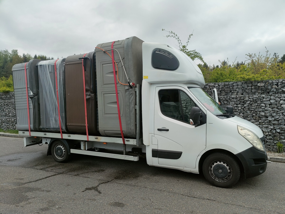 Auf die geladenen Whirlpools angesprochen, gaben die MĂ€nner (33 und 34 Jahre alt) an, diese in Ulm gekauft zu haben. Danach fuhren sie nach Österreich weiter um einen Bekannten zu besuchen. Rechnungen oder andere Kaufnachweise konnten sie nicht vorlegen. Weil die Geschichte den Beamten wenig glaubhaft erschien, durchsuchten sie das Fahrzeug und fanden schließlich Kaufbelege ĂŒber die Whirlpools, ausgestellt in der Schweiz.