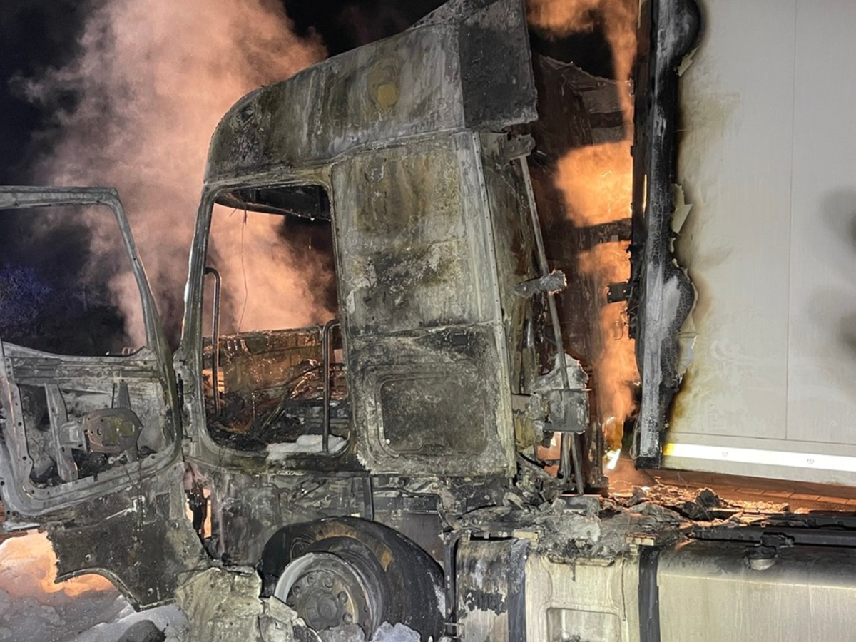 Brennender Lkw auf dem Parkplatz Entenpfuhl