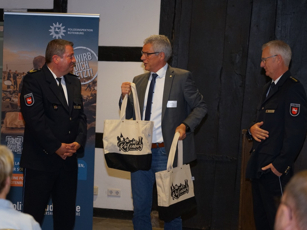 In den Grußworten würdigten Rotenburgs Bürgermeister Torsten Oestmann und der Erste Kreisrat Dr. Torsten Lühring Wesemanns Einsatz als Inspektionsleiter in Rotenburg, seinen modernen und nahbaren Führungsstil und die kollegiale Zusammenarbeit. An die vertrauensvolle und enge Zusammenarbeit zwischen Polizei und Politik möchten sie nun mit Dieter Klingforth anknüpfen.