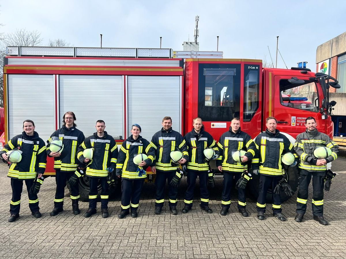 FW-WRN: 9 Kameradinnen und Kameraden der Freiwilligen Feuerwehr Werne haben die gemeinsame Modulausbildung 1 & 2 mit Erfolg bestanden