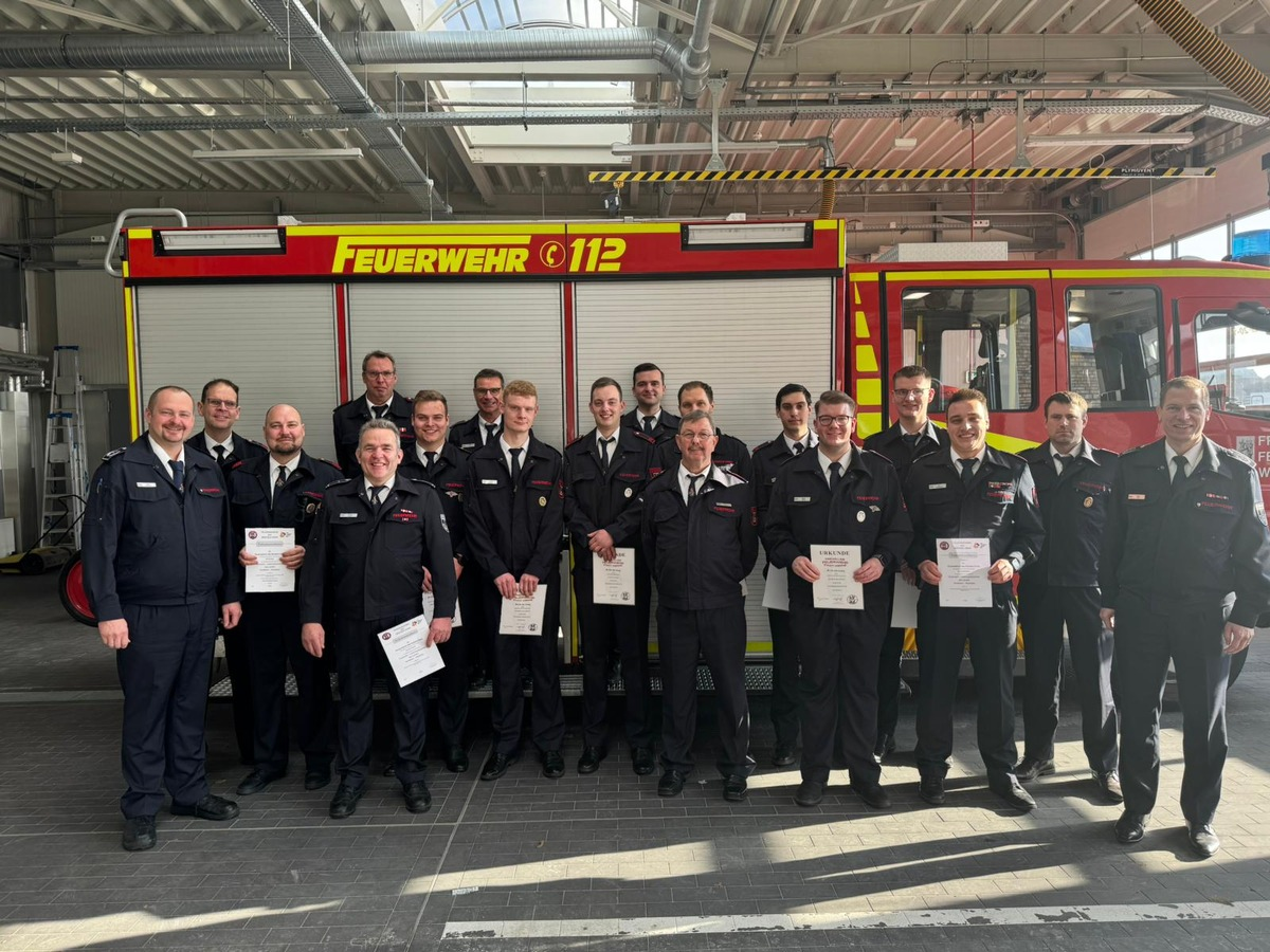 Johannes Schlierkamp, Germain Schulenberg und Dennis Vogt konnten zum Feuerwehrmann befördert werden. Mamadou Cire Diallo, Malte Littau und Paul Schlierkamp wurden zu OberfeuerwehrmÀnnern befördert. Robin Breuker, Hendrik Dahlhoff, Tobias Dahlhoff und Manuel Zielinski konnten zum Unterbrandmeister befördert werden. Marvin Brandt konnte zum Oberbrandmeister befördert werden.