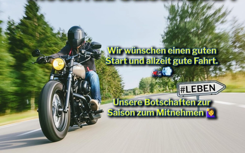 Unter dem #LEBEN wĂŒnschen wir einen guten Start in die Motorradsaison und allzeit gute Fahrt. Kommen Sie möglichst sicher an Ihr Ziel.