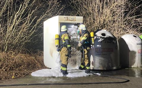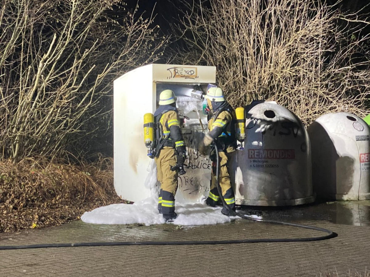 Um 17:51 Uhr erfolgte eine Alarmierung für die Löscheinheit Xanten-Nord. Auf einem Parkplatz in Vynen brannte ein Altkleidercontainer aus ungeklärter Ursache. Dieser wurde durch die Feuerwehr geöffnet und abgelöscht. Im Anschluss wurden die enthaltenen Kleiderbündel mit Löschschaum bedeckt, um ein Wiederaufflammen zu vermeiden.
