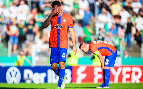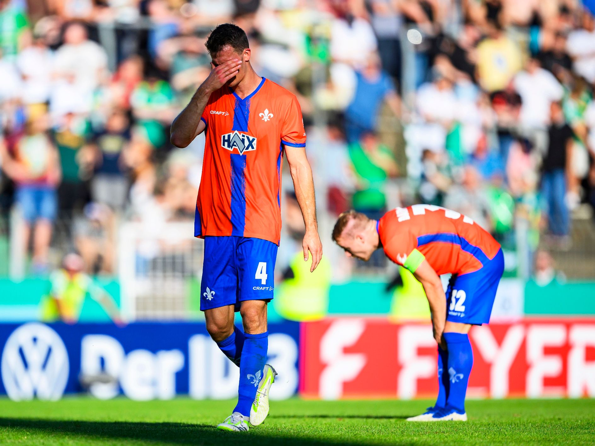 14.08.2023 - 20:10:02 | dpa.deFür Bundesligist SV Darmstadt 98 ist die erste große Blamage der noch jungen Fußball-Saison perfekt. In der ersten Runde des DFB-Pokals unterlagen die Südhessen 0:3 (0:1) beim FC 08 Homburg aus der Regionalliga Südwest und schieden als vierter Erstligist nach Werder Bremen, dem VfL Bochum und dem FC Augsburg aus.