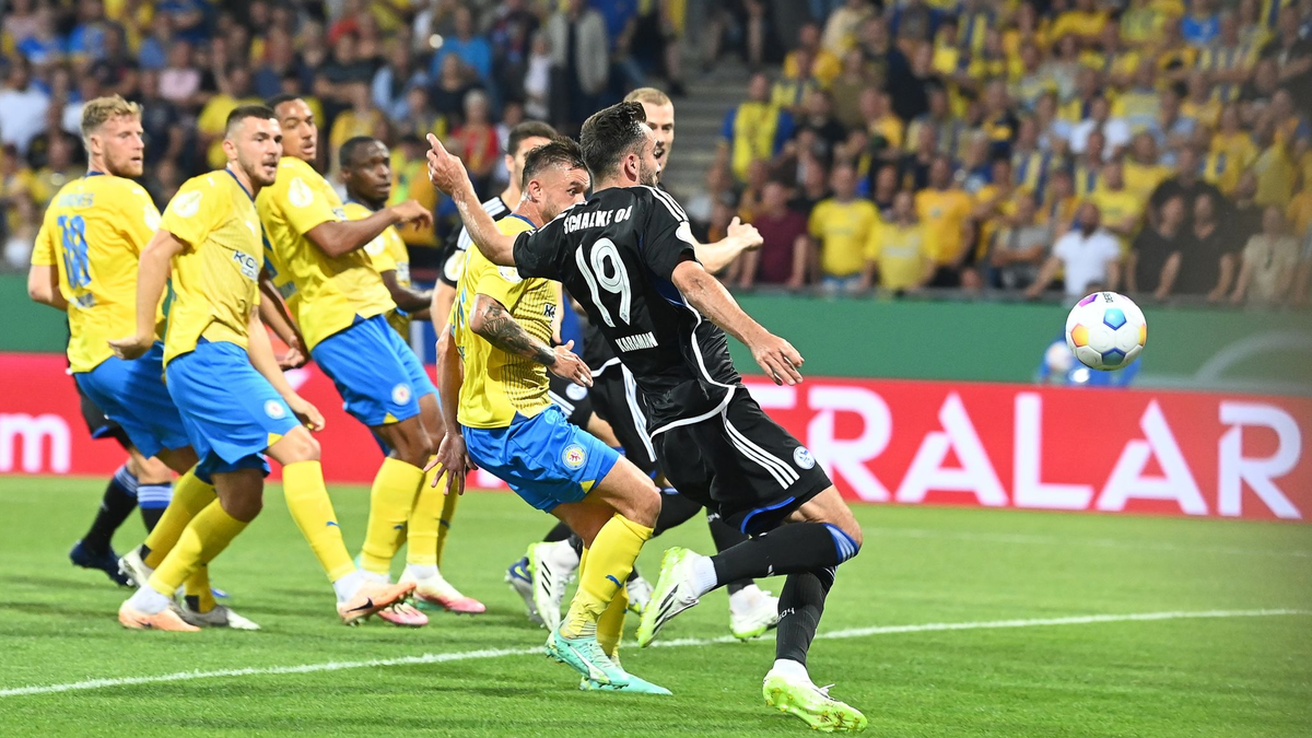 Derweil sind die beiden Zweitligisten Hannover 96 und Karlsruher SC schon raus. Beim Drittligisten SV Sandhausen verlor Hannover verdient mit 2:4 im Elfmeterschießen und ist damit in der neuen Saison auch nach drei Pflichtspielen noch sieglos. Nach einem phasenweise wilden Spiel verwandelte Abu-Bekir El-Zein den entscheidenden Strafstoß für die Gastgeber und bescherte den Niedersachsen das peinliche Aus in der ersten Runde. Nach regulärer Spielzeit und Verlängerung hatte es 3:3 (3:3, 1:2) gestanden. In der Verlängerung war Sandhausen bei großer Hitze lange Zeit die bessere Mannschaft, traf jedoch nicht mehr und kam im Elfmeterschießen dann doch noch zum Sieg.