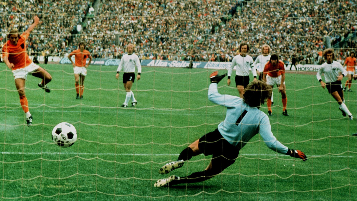 Eines seiner bekanntesten Tore: Johan Neeskens trifft im WM-Endspiel 1974 gegen Deutschland zur 1:0-FĂŒhrung. - Foto: picture-alliance / dpa