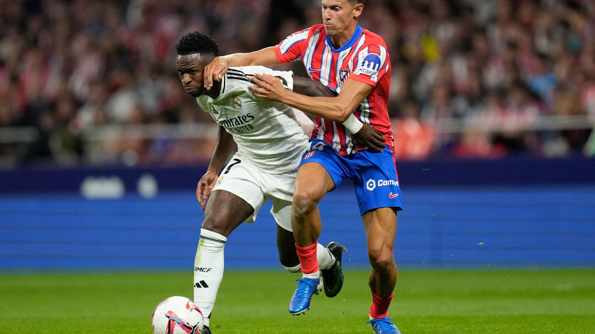 • Kämpfen um den Sieg im Stadtderby von Madrid: Reals Vinicius Junior (l) und Atleticos Marcos Llorente. - Foto: Bernat Armangue/AP