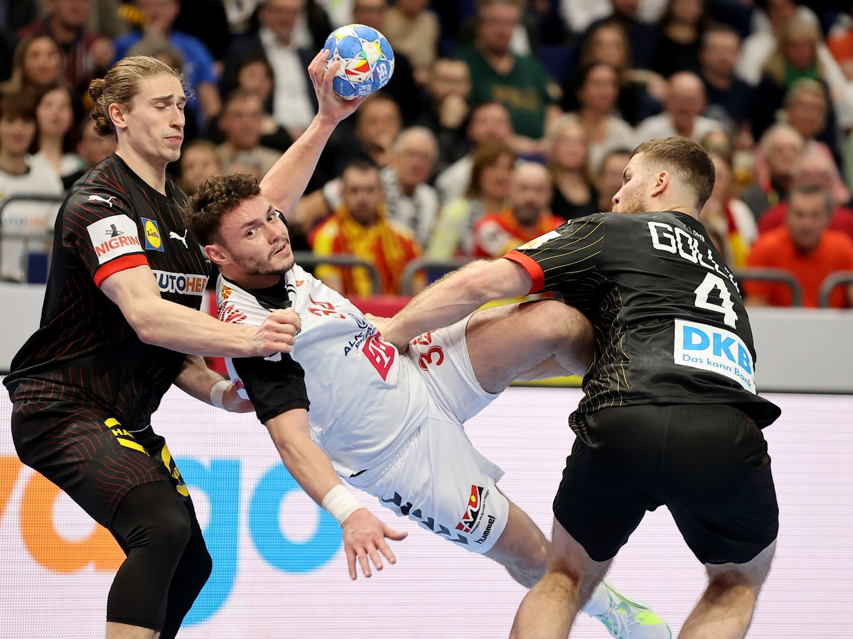 Ohne den gerade zum zweiten Mal Vater gewordenen Kai Häfner, für den U21-Weltmeister Nils Lichtlein in den Kader rückte, nahm das DHB-Team den Kampf ab der ersten Sekunde bravourös an. Die Abwehr mit dem Innenblock-Duo Johannes Golla und Julian Köster stand stabil und eröffnete Nordmazedonien kaum Lücken. Gleichzeitig spielte Deutschland seine Tempogegenstöße über Linksaußen Lukas Mertens erfolgreich aus und führte schnell mit 5:2.